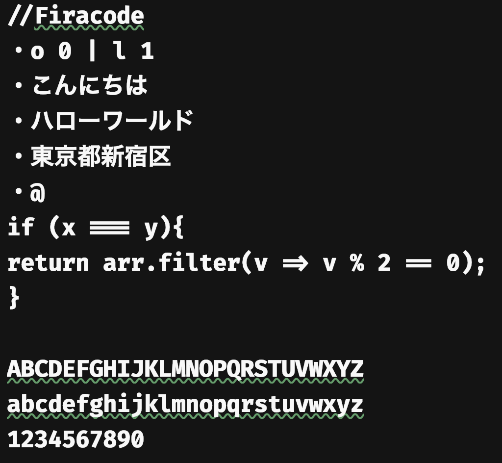 今回だと、== 、===、=> のことを指していますね。先ほど、ご紹介したJetBrains Monoも合字になっているので、良ければ見比べてみてください。